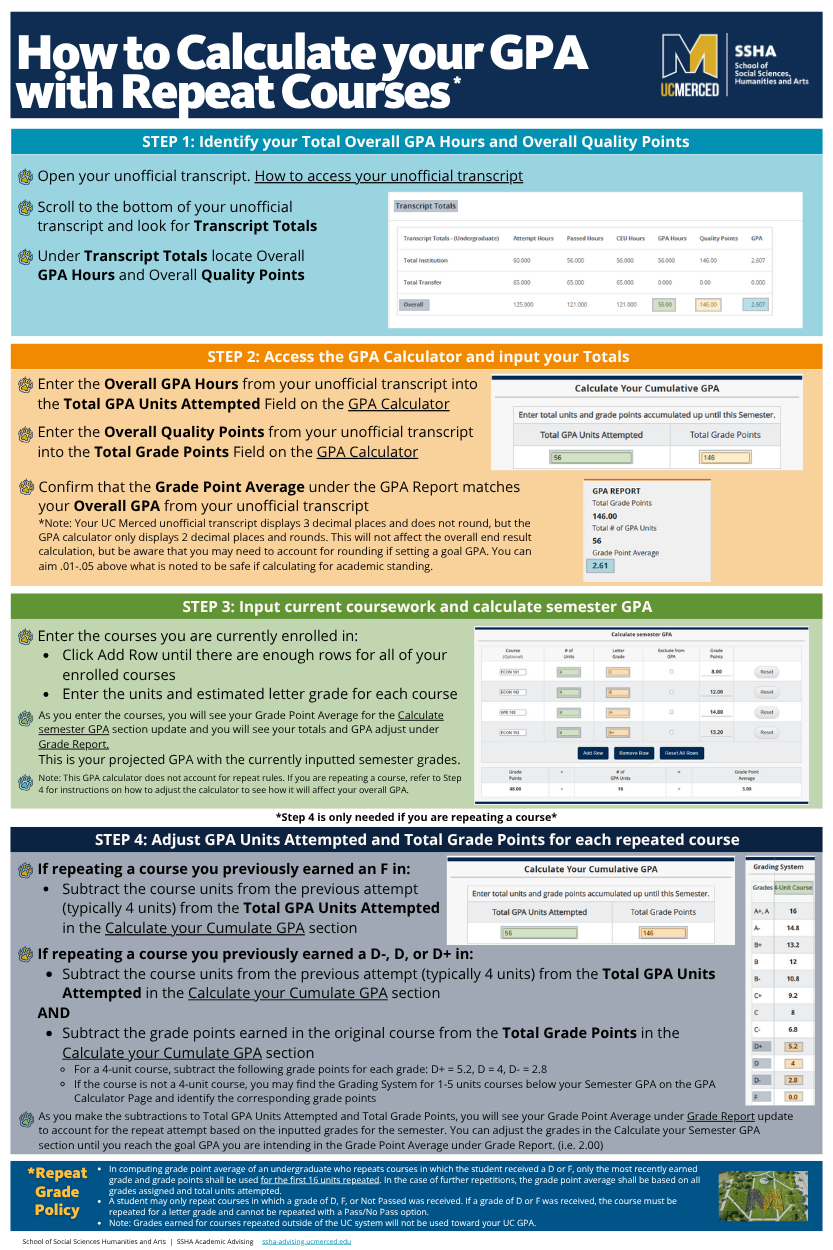 Follow the steps below to calculate your cumulative GPA. If you are repeating a course that qualifies to replace the previous grade, you can continue with the steps to adjust the calculator for your repeated course.